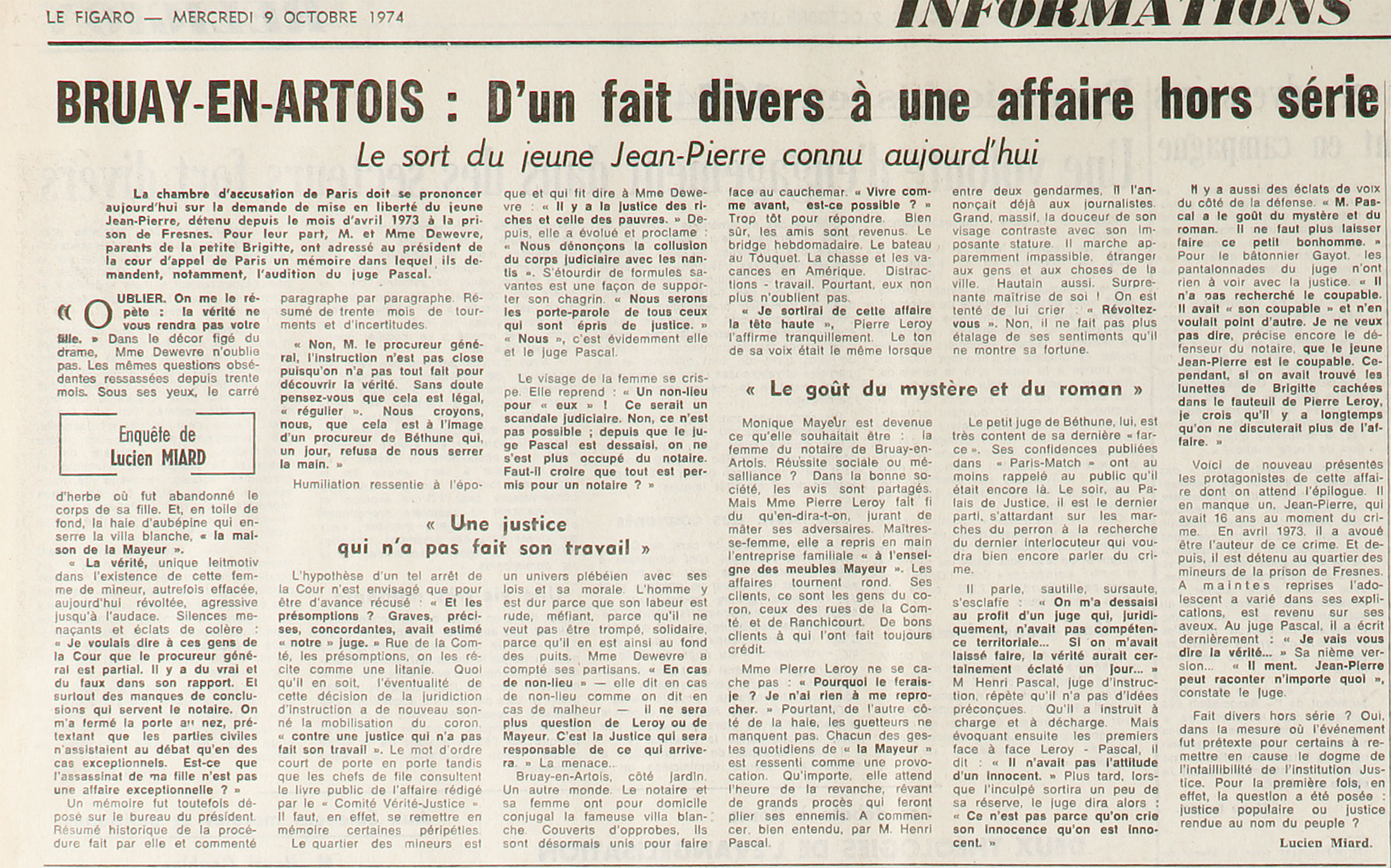 Sujet du message : Le figaro 9 octobre 1974