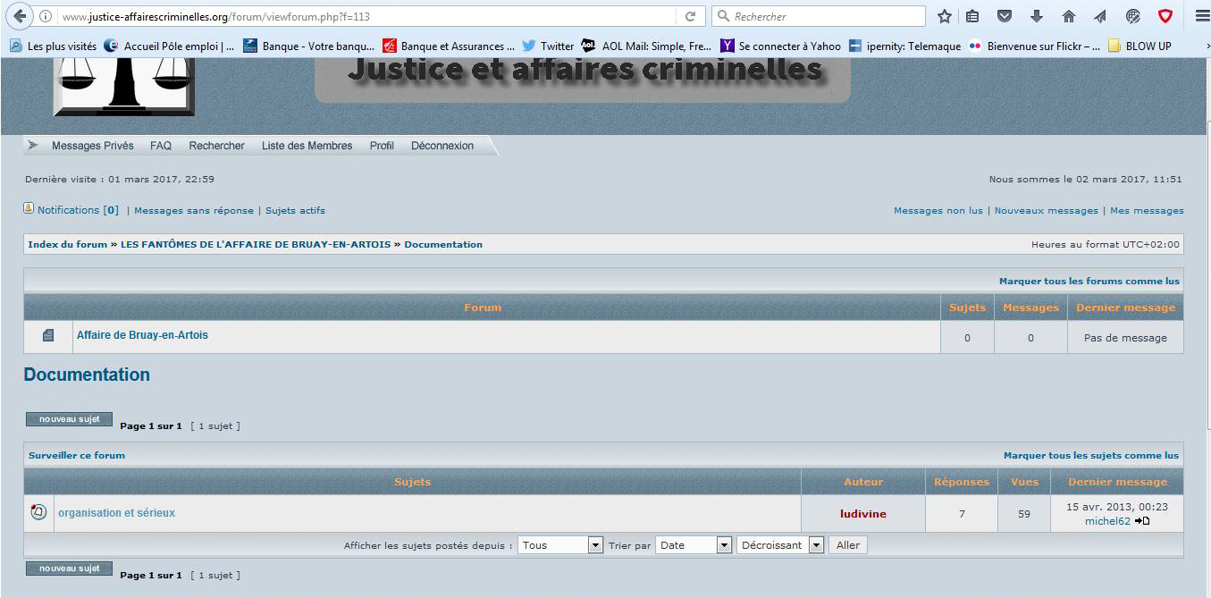 Bonjour à tous. Nouveau sur le forum, je ne vois pas le dossier concernant la documentation sur l'affaire de Bruay contrairement à celles de Gregory Villemin et Mohamed Chara dont les dossiers sont bien visibles.
